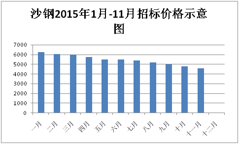 附表:沙钢2015年1月-11月硅锰6517招标价格示意图