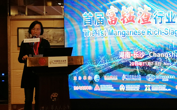 全国锰业技术委员会专家委员会主任谭立群女士致辞。